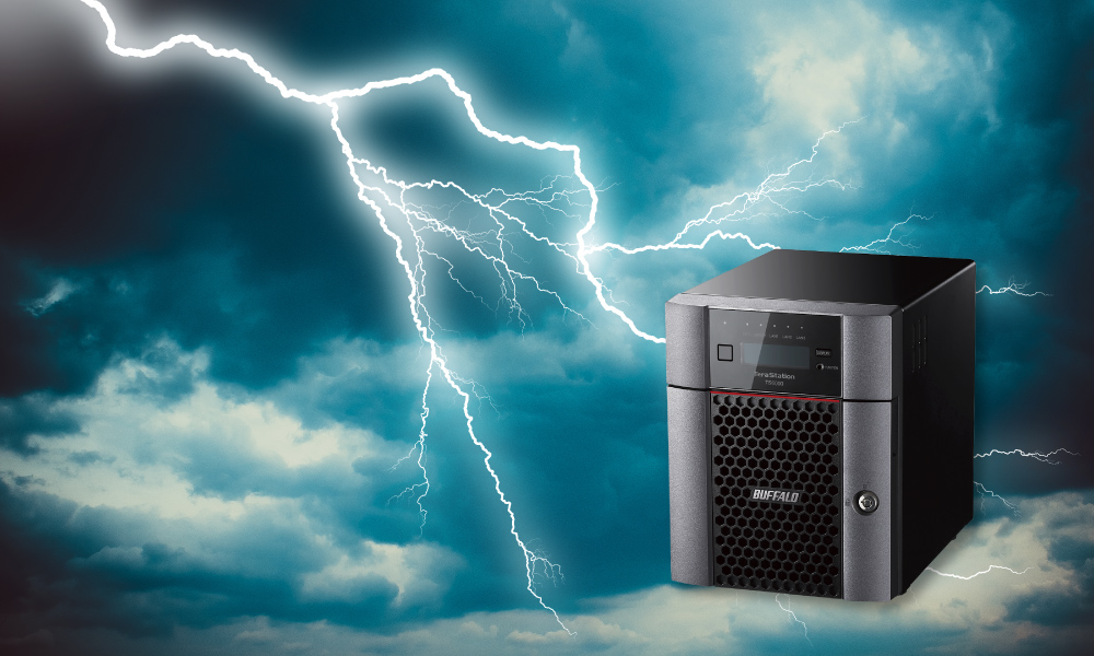 停電により、稼働中のNASやサーバーへの電力供給が急に止まると、本体やHDD/SSDに負荷がかかり、故障の原因になることがあります。停電後にRAIDストレージにアクセスできなくなったときはすぐに本体を確認し、エラーメッセージや異音などの異常が見られる場合は、すぐに使用を中止してください。むやみに再起動すると、RAIDのコントローラーが自動でデータを復旧しようとして、さらに重症化する恐れがありますのでご注意ください。