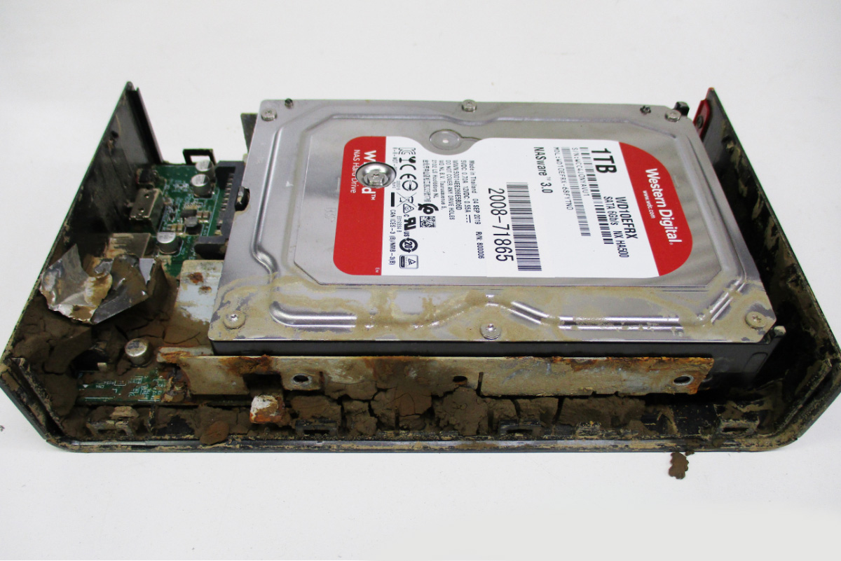 翌日オフィスを訪れたスタッフから現場の状況を報告してもらい、その時にようやくデータの事を思い出して確認してもらいましたが、案の定水没して泥だらけの状態で復旧はまず無理だと落胆したのを覚えています。