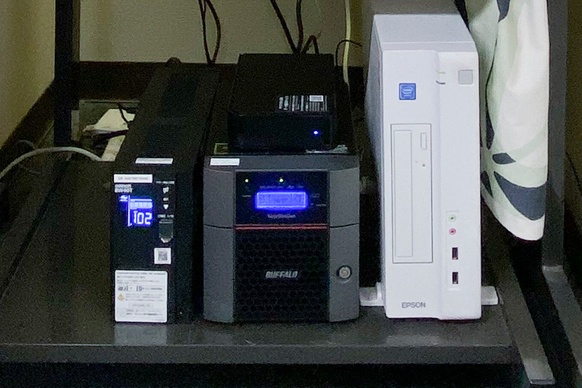 新たに設置されたNASとバックアップシステム。現在は毎朝NASを使用する前に、前日のバックアップデータを確認するようにしています。