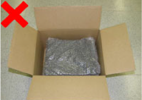 - 梱包箱に十分な緩衝材が入っていないと運送中の衝撃により、商品が破損する場合があります。緩衝材を十分に入れてください。